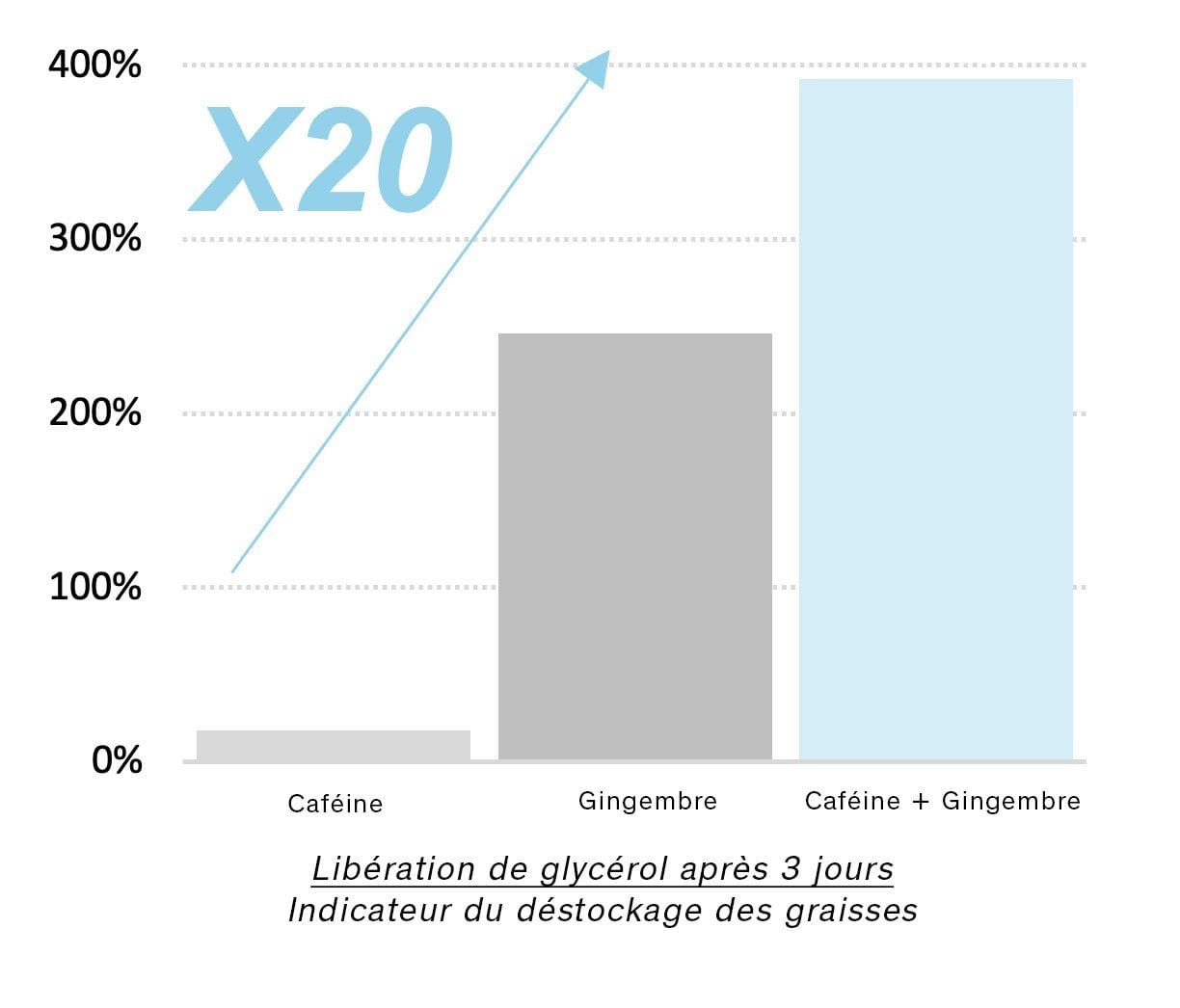 REZULTAT: 20X skuteczniej przyspiesza uwalnianie zmagazynowanego tłuszczu, niż sama kofeina(3)