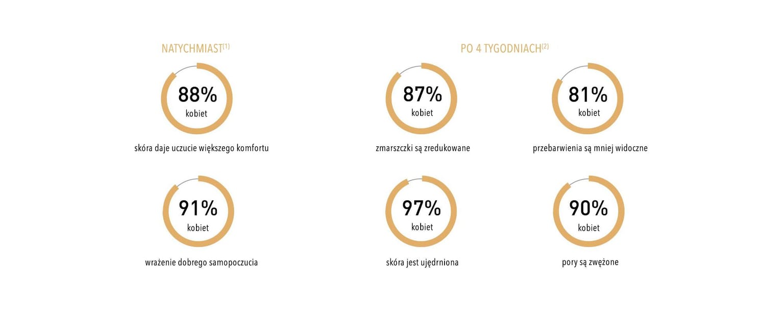 (1) Samoocena - 32 kobiety - efekt stwierdzony natychmiast po zastosowaniu Jedwabistego kremu (2) (2) Samoocena - 32 kobiety - efekt stwierdzony po 4 tygodniach stosowania